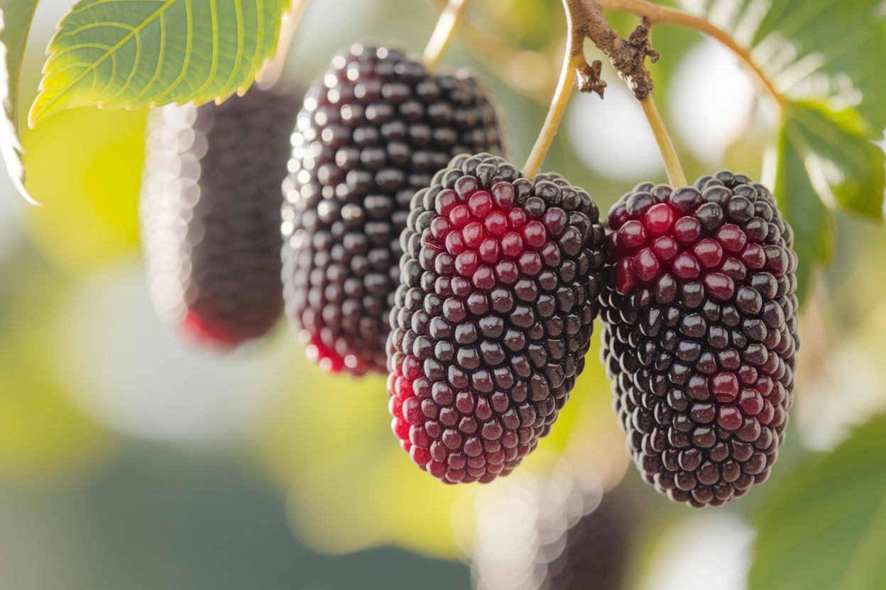 Ces arbres produisent des fruits comestibles délicieux, souvent confondus avec les mûres des ronces. Pourtant, leur goût est unique : plus doux, plus parfumé, avec une texture particulière qui rappelle à la fois la framboise et la mûre.