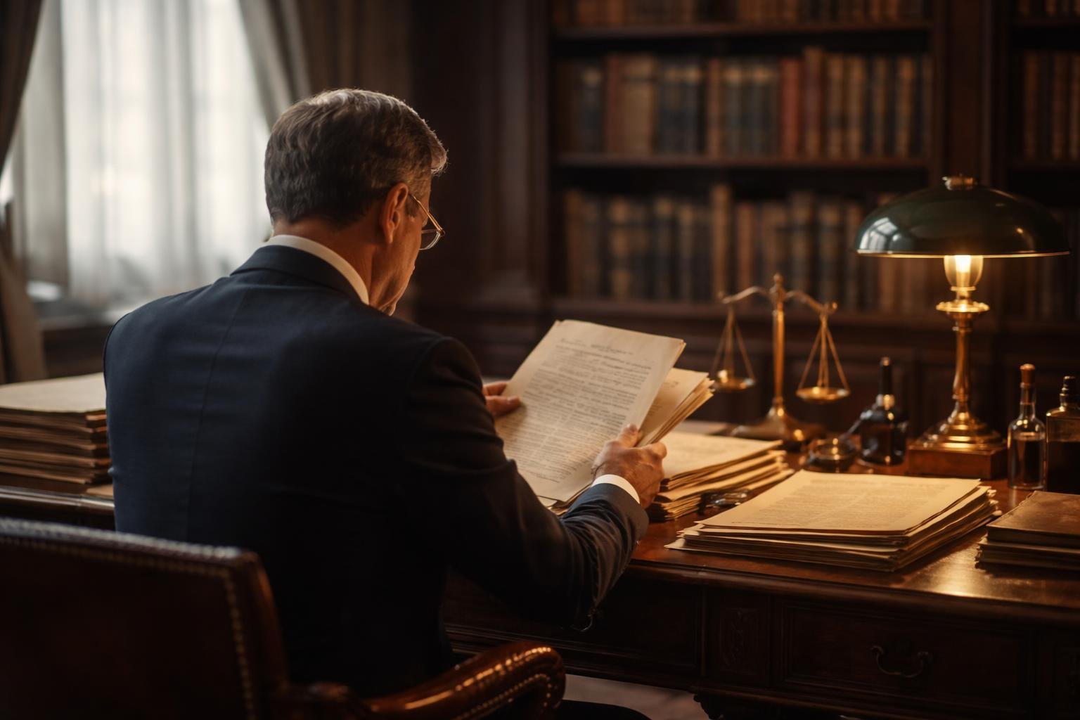 notaire-bureau-bois-documents-bibliotheque